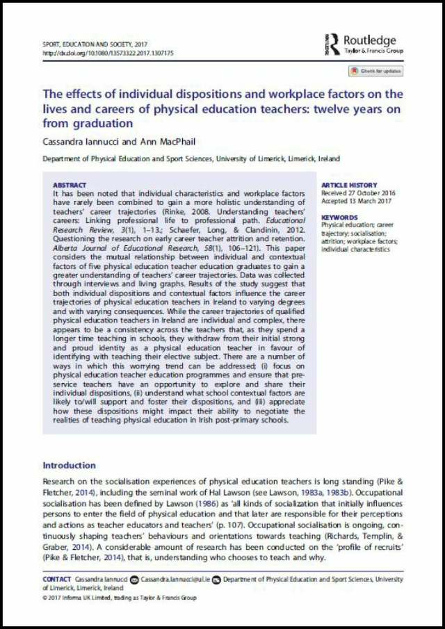 Research Impact: Entry into PE teaching in Ireland is highly sought after and competitive. Yet, there is a worrying trend that PE teachers, as they spend more time teaching in schools, seek to reduce the […]
