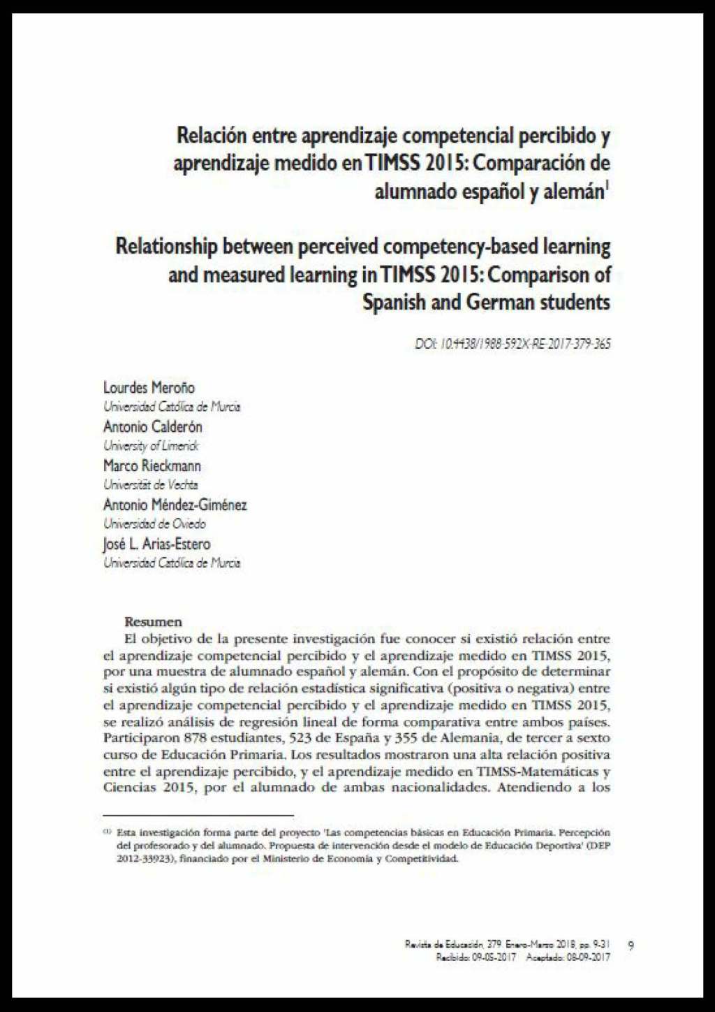 Meroño, L., Calderón, A., Rieckmann, M., Méndez-Giménez, A., Arias-Estero, J. L. (2018). Relationship between perceived competency-based learning and measured learning in TIMSS 2015: Comparison of Spanish and German students. Revista de Educación, 379, 9-31. doi: 10.4438/1988-592X-RE-2017-379-365