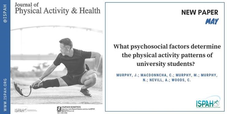 Murphy, J.J., MacDonncha, C., Murphy, M.H., Murphy, N., Nevill, A.M. and Woods, C.B., 2019. What Psychosocial Factors Determine the Physical Activity Patterns of University Students?. Journal of Physical Activity and Health, (00), pp.1-8. DOI: 10.1123/jpah.2018-0205