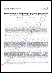 Kinnerk, P., Harvey, S., Kearney, P., MacDonncha, C., & Lyons, M. (2019). An Investigation of the Self-Reported Practice Activities and Session Sequencing of Inter-County Gaelic Football Coaches. International Sport Coaching Journal, 6(2), 211-219. https://doi.org/10.1123/iscj.2018-0090