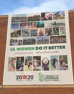 To support the 20×20 campaign, UL Sport have also hung a banner proudly from the arena wall, and to me it is brilliant. Women and anyone associated with female sports can only but feel a sense of pride walking by it. Only those who know the barriers and struggles of being a female athlete will fully understand why campaigns and initiatives to increase participation in sport and physical activity for girls are so important. The other night while on the pitches at UL there were many young people and their parents kicking, pucking, throwing a rugby ball and just playing in general. Walking across the pitch was a mother and her daughter who could have been no more than 6 years of age. They were both beaming after coming away from an underage football session while talking football between laughter. If you could describe someone having “a pep in their step” it would have looked like this girl coming off the pitch. She was clearly a very happy child after her training session so kudos to her coach whoever they are. My mind wandered to what the future may hold for her. This is why I realised that I am grateful. I am grateful for those people who push boundaries, who make sure that women are on the agenda in a meaningful way and who know that unless you drive change and standards things will always remain the same. That for this 6 year old girl she could grow up on an even playing field to boys and men. Perhaps in the year circa 2033 when she is in college in UL she will be shown google images of this banner that donned the wall of the arena. She will hopefully laugh and be amazed at the fact that there were campaigns like this one and a wall dedicated to female sports personalities. For now however, in this year 2020 this banner is very important.