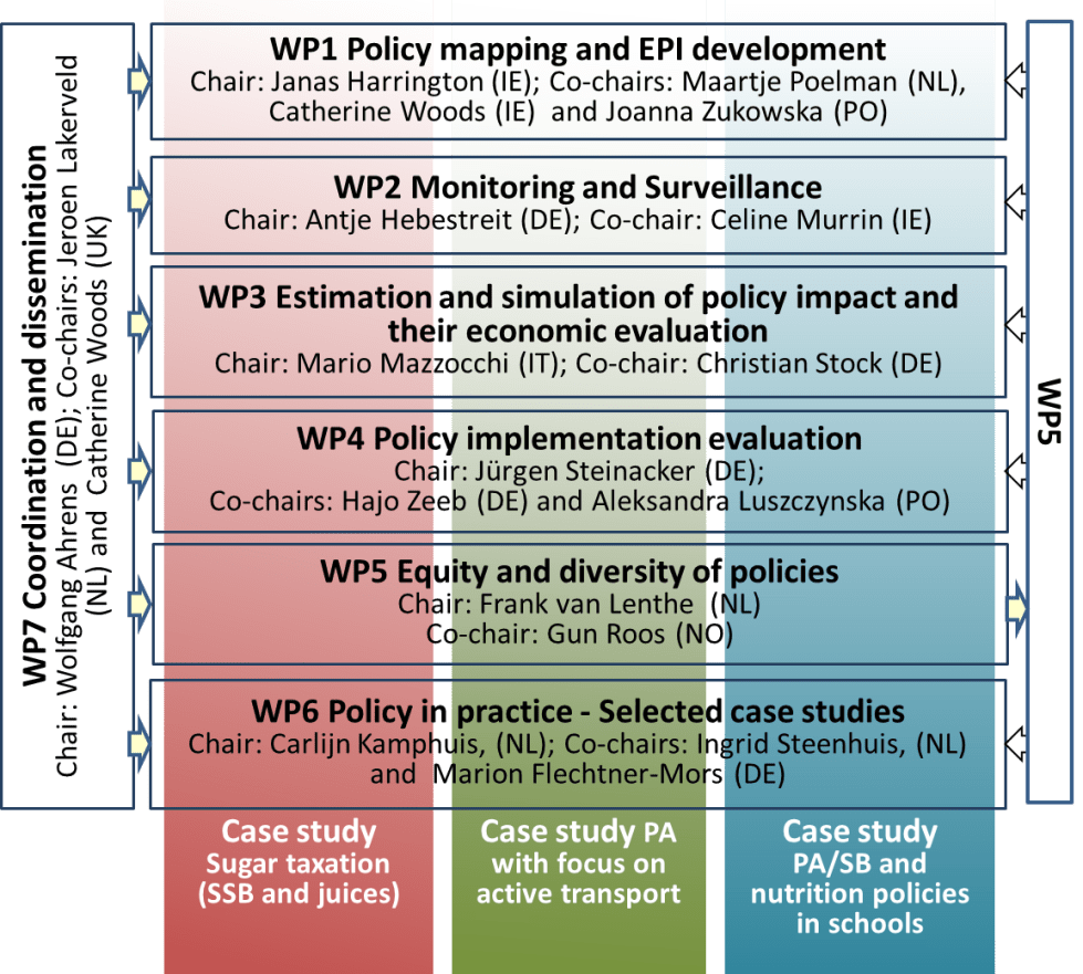 Non-communicable diseases are the leading cause of global mortality, responsible for 39.5 million deaths in 2015, which equates to 70% of all deaths. Successful policy actions to address physical inactivity, unhealthy diets and sedentary behaviour have the potential to influence the health and well-being of an entire population. At the public policy level, the initiation, coordination and implementation of policies that enhance opportunities for whole populations to make healthier physical activity (PA) and diet-related choices are necessary. Yet, no systematic research on the assessment or evaluation of policy interventions across Europe is currently being conducted. Consequently, no information on the merit, worth or utility of policy interventions is available and no guidance or recommendations on how to address this gap in our knowledge exists.As part of the Joint Programming Initiative on a Healthy Diet for a Healthy Life, researchers from 28 institutes in seven European countries (France, Germany, Ireland, Italy, Norway, Poland, and the Netherlands) and New Zealand combine their expertise to form a Policy Evaluation Network (PEN). PEN’s vision is to provide Europe with tools to identify, evaluate and benchmark policies designed to directly or indirectly address physical inactivity, unhealthy diets and sedentary behaviour while accounting for existing health inequities. Using structured evaluation principles and methods, PEN will examine the content, implementation and impact of lifestyle policies across Europe and will build on existing knowledge from DEDIPAC (Determinants of Diet and Physical Activity) and the INFORMAS (International Network for Food and Obesity/ non-communicable diseases Research, Monitoring and Action Support) framework. With seven inter-related work packages (WPs), PEN will provide an overview of the ‘best’ public policies most likely to sustainably support more favourable health behaviours. It will realise the first steps in a bespoke policy monitoring and surveillance system for Europe and refine our knowledge of appropriate research designs and methods for the quantification of policy impact. It will contribute to our understanding of how to achieve successful transnational policy implementation of these evidence-based or evidence-grounded policies in different cultural, demographic or socio-economic settings with particular focus on vulnerable groups. PEN will provide recommendations on equity and diversity to ensure that policy actions are inclusive as opposed to exclusive, are relevant to the changing landscape of Europe and are culturally sensitive. Finally, PEN will provide three worked examples of policy in practice. Three case studies will illustrate how best to evaluate the implementation and impact of policy in order to yield the best results for a healthy diet for a healthy life for European citizens. PEN will (1) assess public policies with potential influence on food and PA environments, (2) foster a pan-European monitoring and surveillance system, (3) model the impact of policies at the population level, (4) evaluate policy implementation processes and their facilitators and barriers, and (5) give recommendations for an equity and diversity perspective in policies directly or indirectly targeting dietary, PA or SB behaviours across Europe. Key Objectives