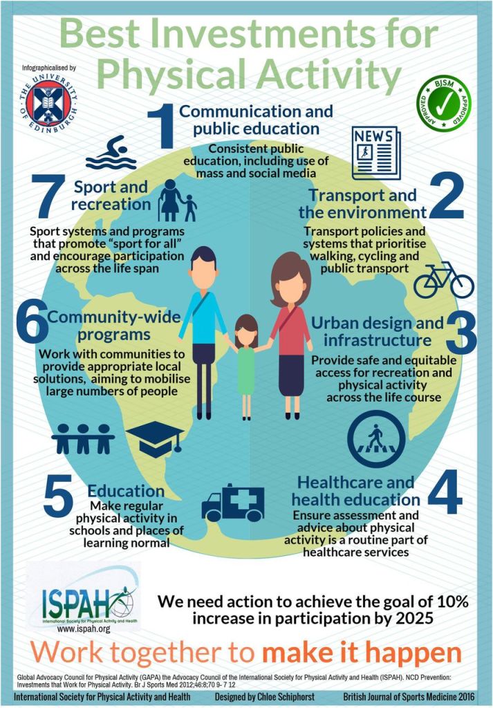 The University of Limerick research team (Prof Catherine Woods, Dr. Liam Kelly, Dr Enrique García Bengoechea (EHS Dean’s Fellow), Kevin Volf, PESS PhD Student) will lead the PA aspect of WP1. WP1 will provide an overview of public policies with direct/indirect potential influence on food and PA policy environments. An initial systematic literature review will attempt to determine what is the impact of policy interventions on PA outcomes? This systematic literature review was guided by NON COMMUNICABLE DISEASE PREVENTION: Investments that Work for Physical Activity (2012) (http://www.globalpa.org.uk/pdf/investments-work.pdf), developed as part of the Toronto Charter which called for political commitment in order to achieve greater opportunities for PA (Bull et al., 2010). This ‘seven best investments’ document was selected to provide the structure for the search as it provides evidence for the PA domains that are well supported by evidence.