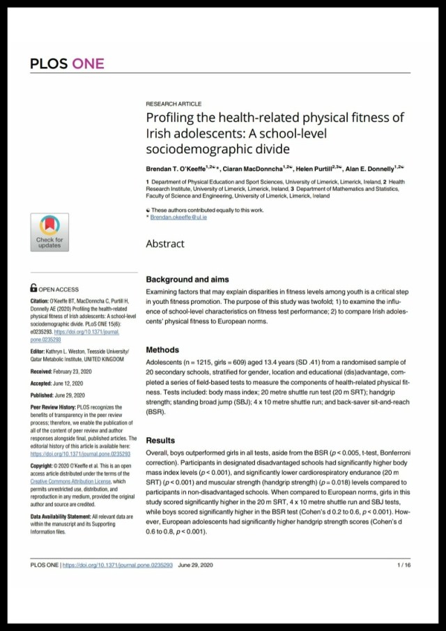 Research Impact: This study represents the first comprehensive review of multiple components of health-related fitness among a stratified sample of adolescents in the Republic of Ireland. The purpose of this study was twofold; 1) to examine […]
