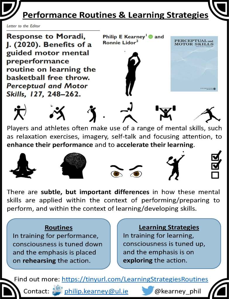 Kearney, P. E., & Lidor, R. (2020). Response to Moradi, J. (2020). Benefits of a guided motor mental preperformance routine on learning the basketball free throw. Perceptual and Motor Skills, 127, 248–262. Perceptual and Motor Skills. https://doi.org/10.1177/0031512520949712