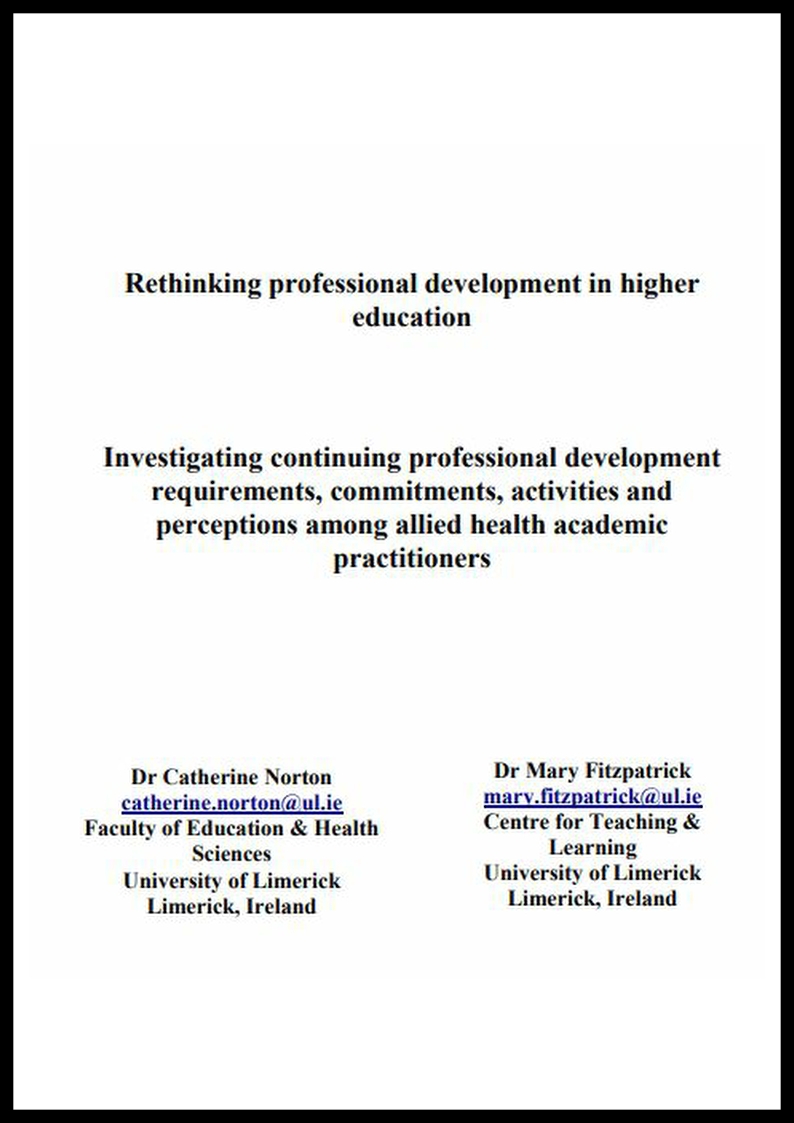 Norton, C & Fitzpatrick, M. 2019. Rethinking professional development in higher education. Investigating continuing professional development