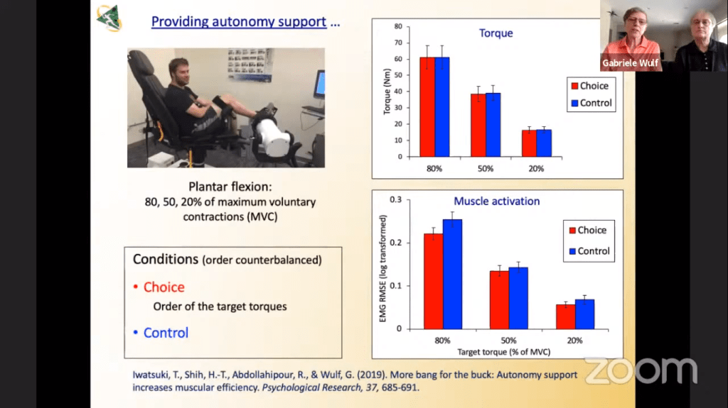 Our first session hosted Professor Gabrielle Wulf and Dr Rebecca Lewthwaite, who provided a detailed insight into how providing choice, and subtle changes in the language used in instruction, can accelerate learning within the context of sports performance or rehabilitation. You can watch their presentation below.