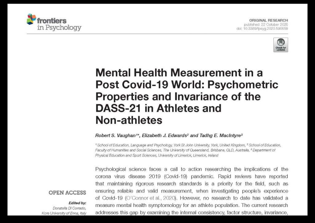Vaughan RS, Edwards EJ and MacIntyre TE (2020) Mental Health Measurement in a Post Covid-19 World: Psychometric Properties and Invariance of the DASS-21 in Athletes and Non-athletes. Front. Psychol. 11:590559. doi: 10.3389/fpsyg.2020.590559