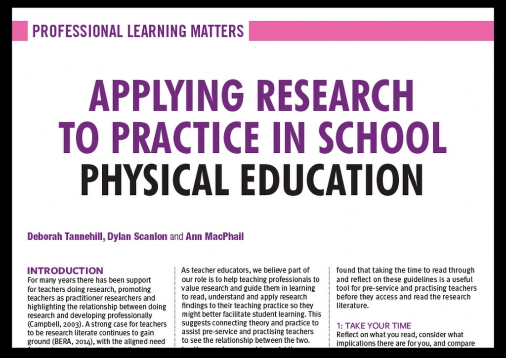 Tannehill, D., Scanlon, D., & MacPhail, A. (2020). Applying research to practice in school physical education, Physical Education Matters. Access paper here