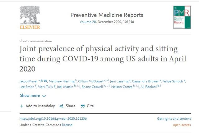 Research Impact: We determined the self-reported prevalence of meeting US physical activity guidelines, stratified by sitting time, during the early lockdown phase of COVID-19 (April 3rd – May 4th, 2020) among 5,036 US adults (65.3% […]