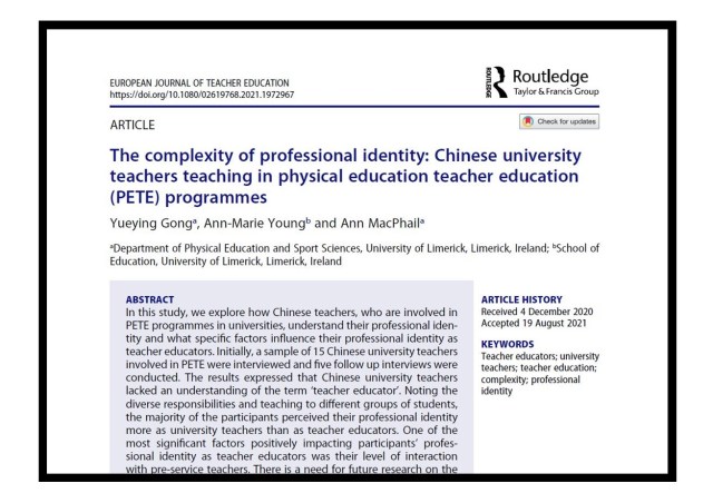 Research Impact: In this study, we explore how Chinese teachers, who are involved in PETE programmes in universities, understand their professional identity and what specific factors influence their professional identity as teacher educators. Initially, a […]