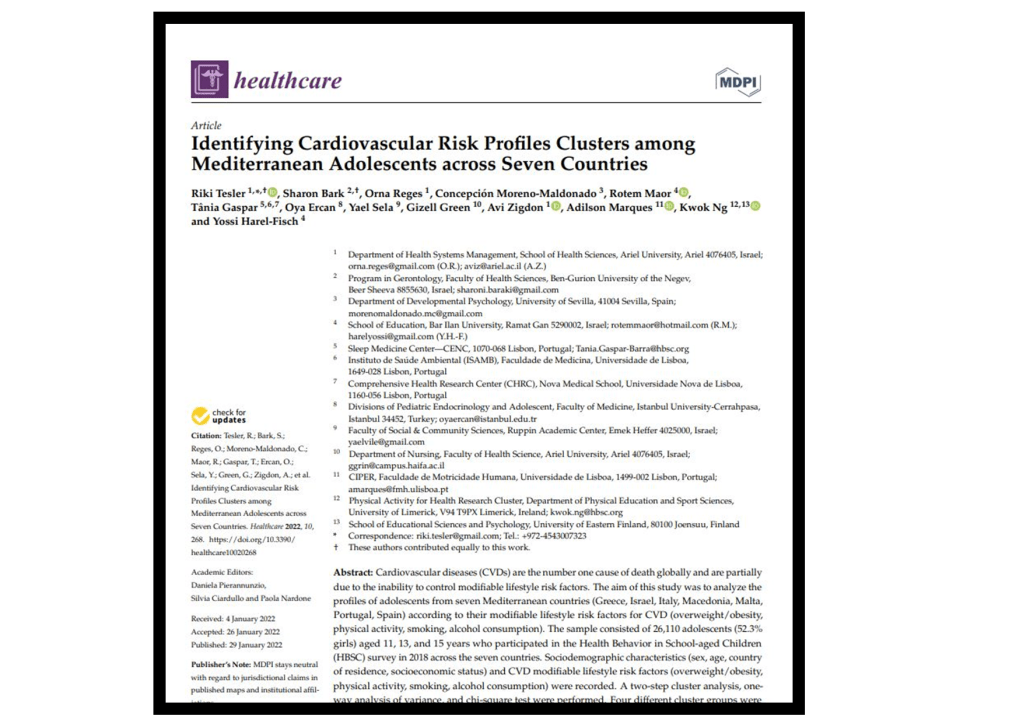Tesler, R., Barak, S., Reges, O., Moreno-Maldonado, C., Maor, R., Gaspar, T., Ercan, O., Sela, Y., Green, G., Zigdon, A. and Marques, A., Ng. K and Harel-Fisch, Y. 2022, February. Identifying Cardiovascular Risk Profiles Clusters among Mediterranean Adolescents across Seven Countries. Healthcare (Vol. 10, No. 2, p. 268). DOI: 10.3390/healthcare10020268