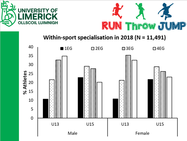 On the RTÉ coverage of the European Indoor Athletics Championships, Rob Heffernan spoke about the value for young athletes in training for and competing in running jumping and throwing events. Such a multi-event approach is thought to develop well-rounded athletes first who can then specialise in a particular discipline, if they wish, later in their development. But is this true? What does the research say about the value of multi-event participation for young athletes? Research from the Athletics Science theme of the Sport & Human Performance Research Centre has explored this question. As ever in sport science, this seemingly straightforward question becomes a little bit more complex when you start to consider all of variables involved.
