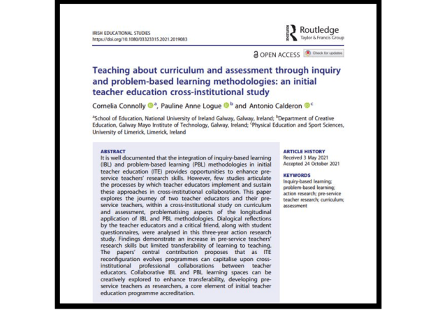 Research Impact: This study set out to problematise aspects of the longitudinal application of IBL and PBL methodologies within a cross-institutional ITE programme in Ireland. Findings included that IBL and PBL methodologies correspond with pre-service […]