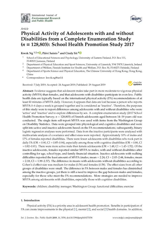 Research Impact: The study of sedentary time is an important area of study among children with disabilities. In this study from the 2013/14 WHO Collaborative Cross-national Health Behaviour in School-aged Children (HBSC) Study, 15 countries […]