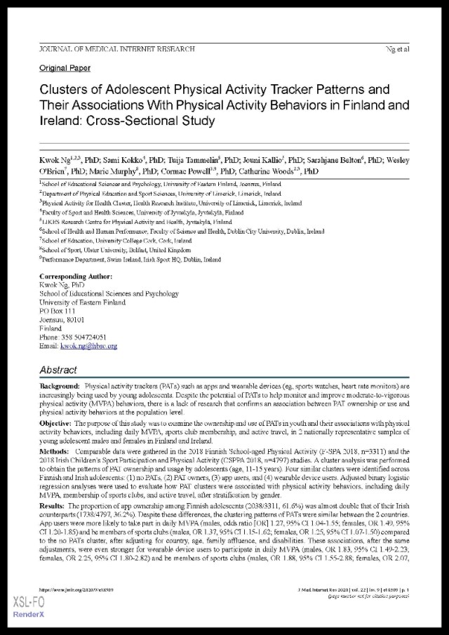 Research Impact: The physical activity (PA) behaviours of young adolescents are influenced by personal and environmental factors. Moreover, more evidence is showing that these patterns are not the same across populations. Therefore it would be […]