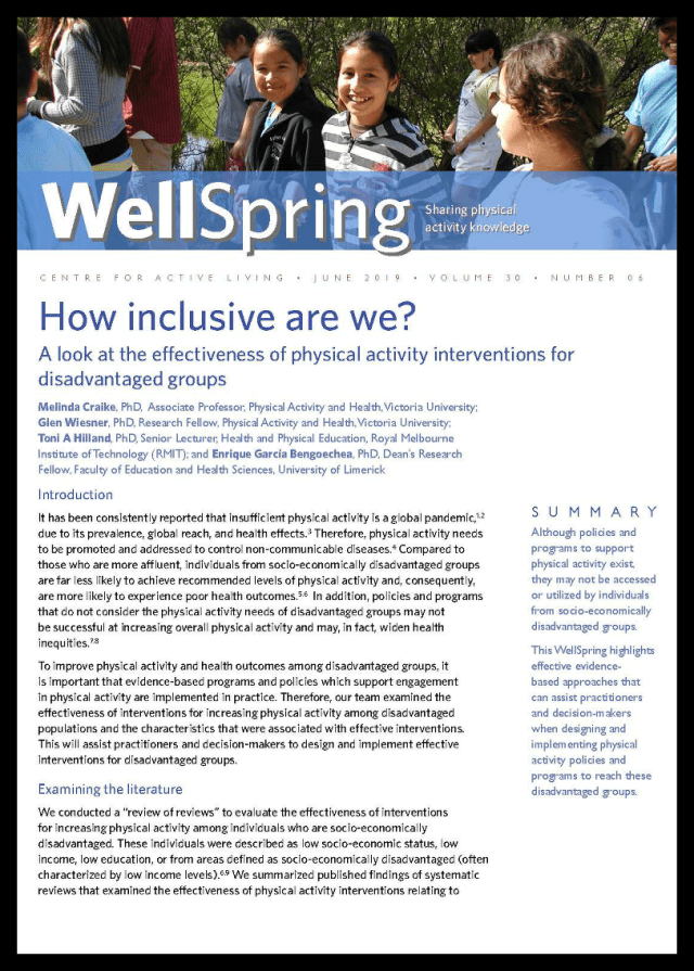 Research Impact: Although policies and programs to support physical activity exist, they may not be accessed or utilized by individuals from socio-economically disadvantaged groups. This invited article highlights effective evidence-informed approaches that can assist practitioners […]