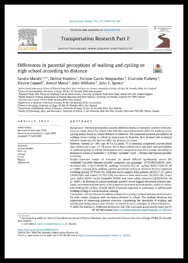 Research Impact: As part of the Built Environment and Active Transport to School (BEATS) study, we compared parental perceptions of walking versus cycling to school in adolescents in Dunedin, New Zealand and examined whether mode-specific […]