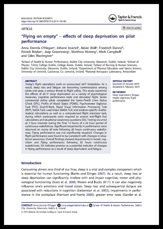 Research Impact: Due to the modern flight operations and the busy work schedules of commercial airline pilots, sleep loss and fatigue would appear to be commonplace and potentially place a serious threat on pilot well-being […]