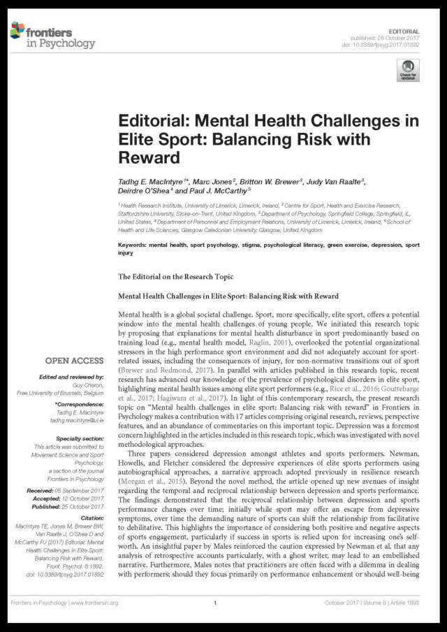 Research Impact: In this paper, we characterise the mental health and motivation of Gaelic games student-athletes over a university season, while also monitoring their athletic and academic schedules. Thirty-seven percent of the cohort reported scores indicative […]