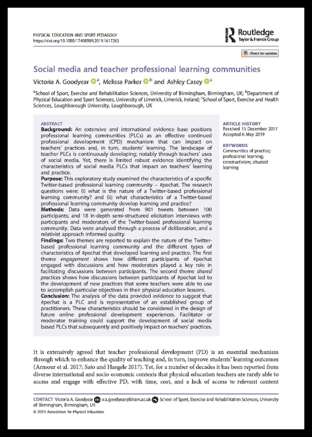 Book Chapter Publication: Parker, M., Patton, K. and Tannehill, D. “Professional development experiences and organizational socialization”. In: Richards, K.A.R., & Gaudreault, K. (2017). Teacher socialization in physical education. London: Routledge.
