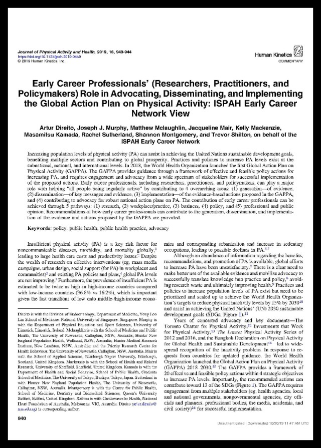 Resarch Impact: In 2018, the World Health Organization launched the first Global Action Plan on Physical Activity (GAPPA) 2018-2030. It is a major milestone for combatting the global burden of insufficient physical activity. Our article […]