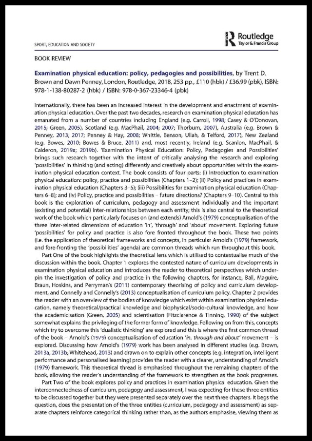 Research impact summary: This publication reviews Trent Brown and Dawn Penney’s book titled ‘Examination Physical Education: Policy, Pedagogies, and Possibilities’. This book brings research on examination physical education together with the intent of critically analysing the research and […]