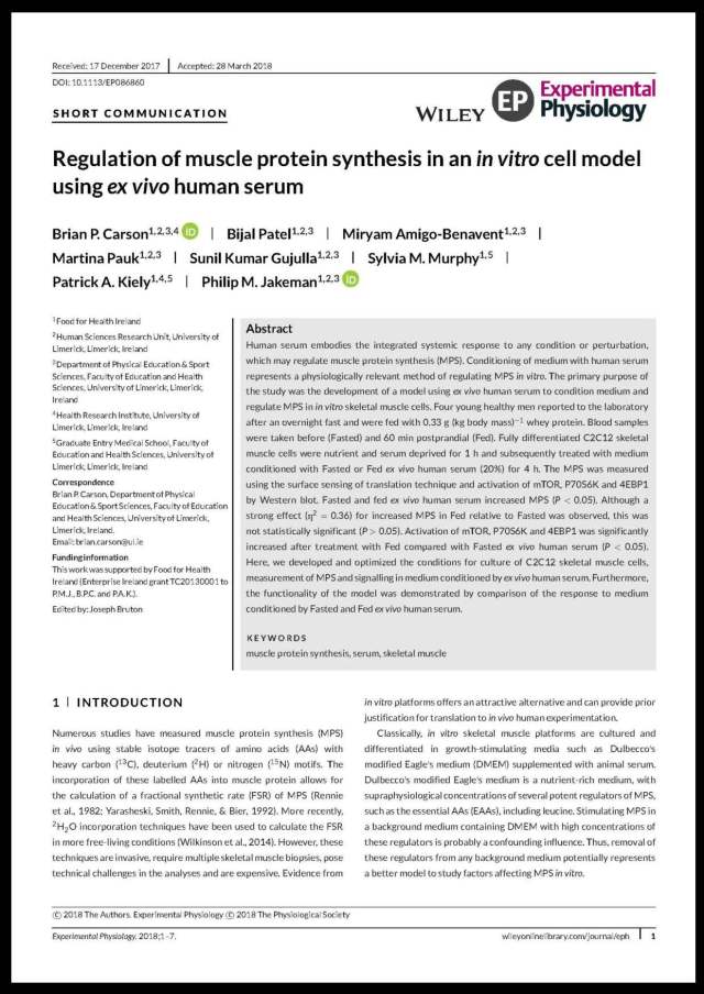 Impact Summary: This study demonstrates that medium conditioned by ex vivo human serum can regulate muscle protein synthesis in skeletal muscle cells in vitro via the mammalian Target of Rapomycin (mTOR) pathway, and this can be […]