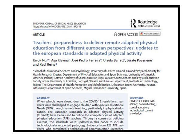 Publication: Teachers’ preparedness to deliver remote adapted physical education from different European perspectives: