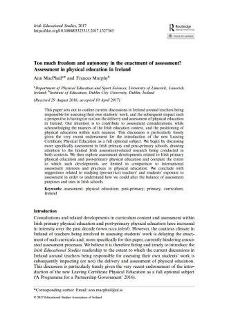 Research Impact: Entry into PE teaching in Ireland is highly sought after and competitive. Yet, there is a worrying trend that PE teachers, as they spend more time teaching in schools, seek to reduce the […]