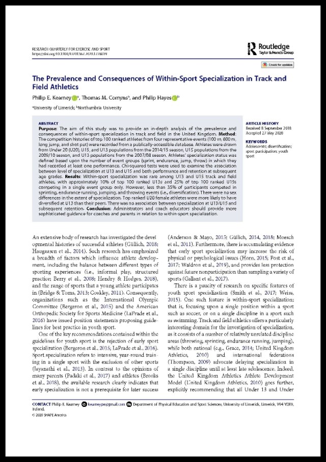 Research Impact: Athletics coaches and administrators often encourage young adolescents to compete across the full range of athletic disciplines: sprinting, jumping, throwing and endurance running. This study found that while specialisation within a single event […]